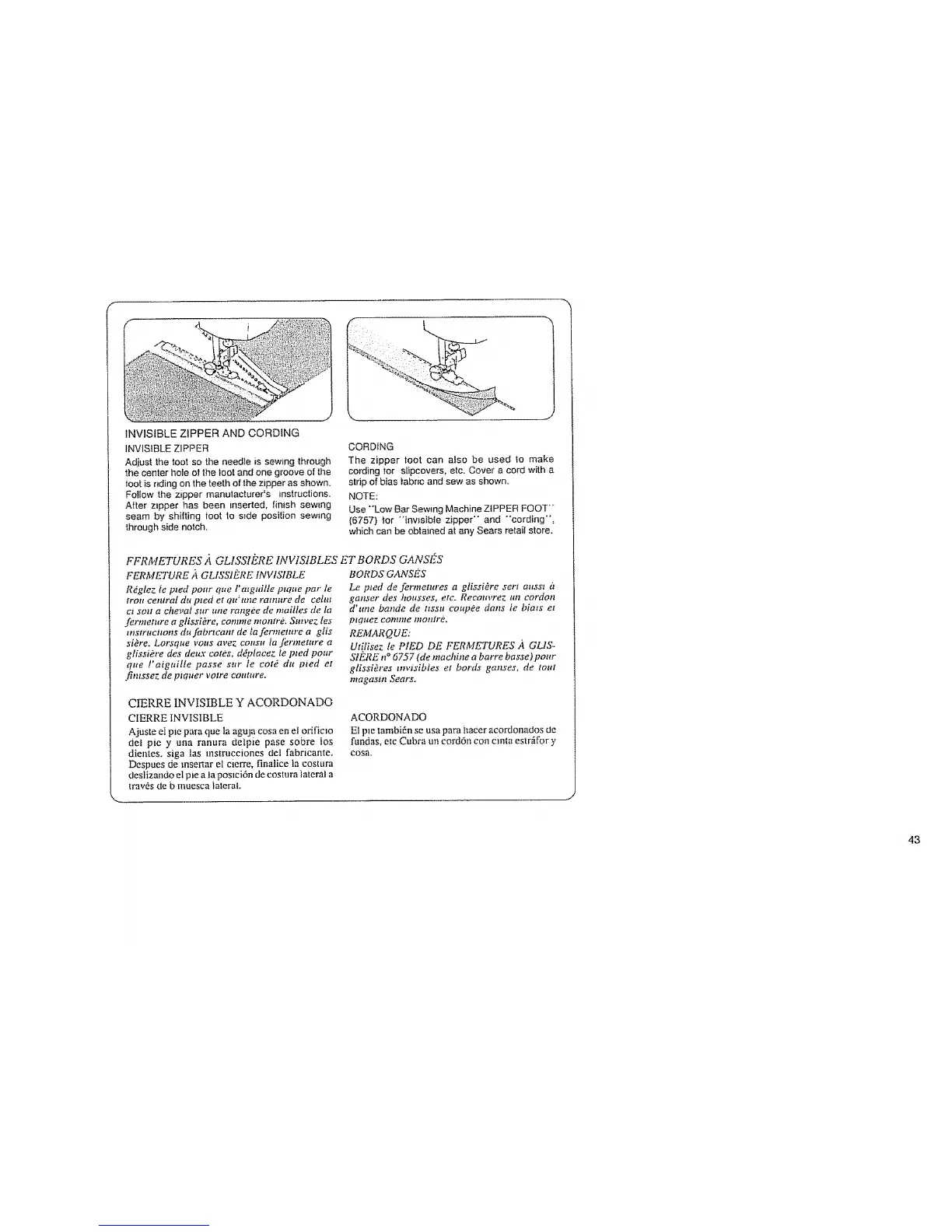 Use "Low Bar Sewing Machine ZIPPER FOOT'"