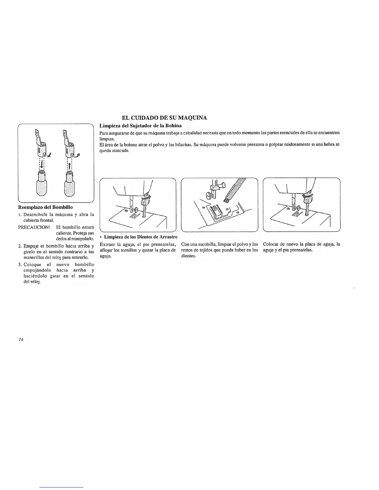 El firea de la bobina atrae el polvo y las hilachas. Su mfiquina puede votverse perezosa o golpear ruidosamente si una hebra se