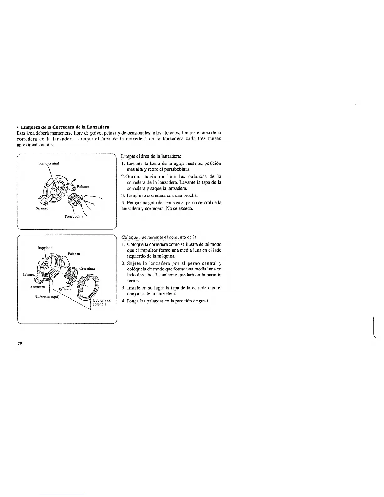 corredera de la lanzadera. Limpie el hrea de la corredera de ia lanzadera cada tres meses