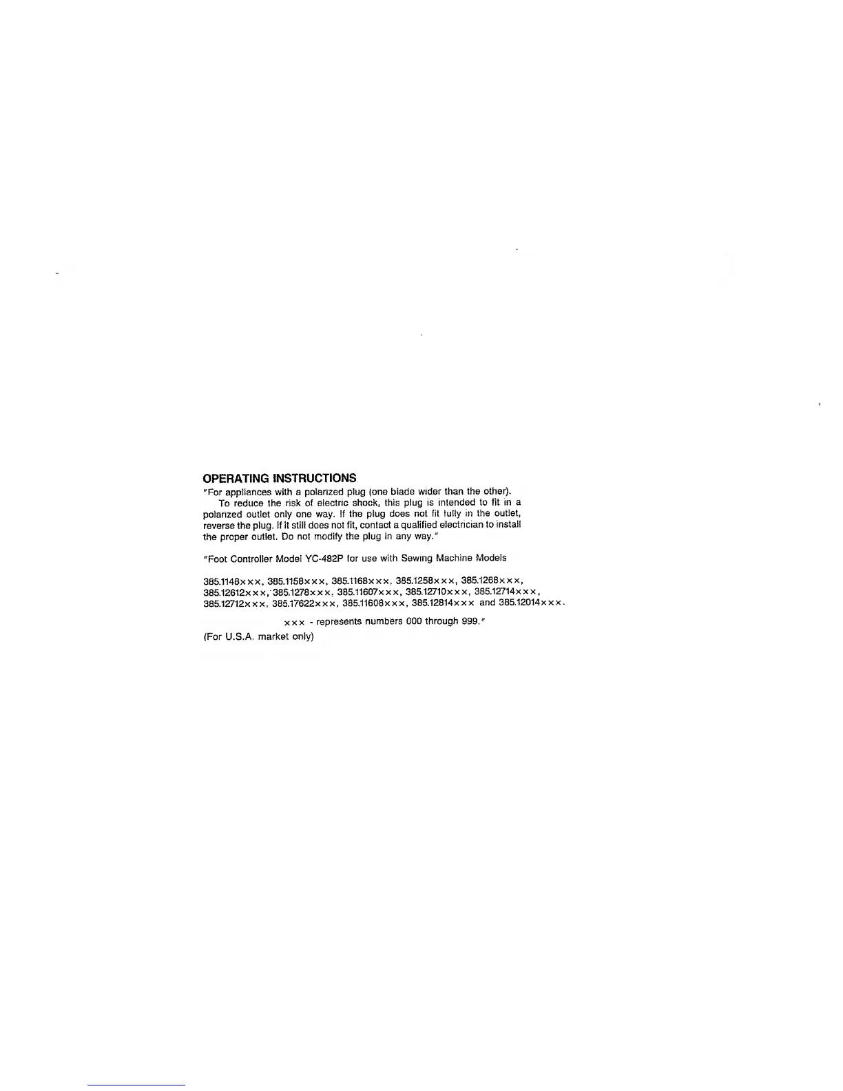 "Foot Controller Model YC-482P for use with Sewing Machine Models