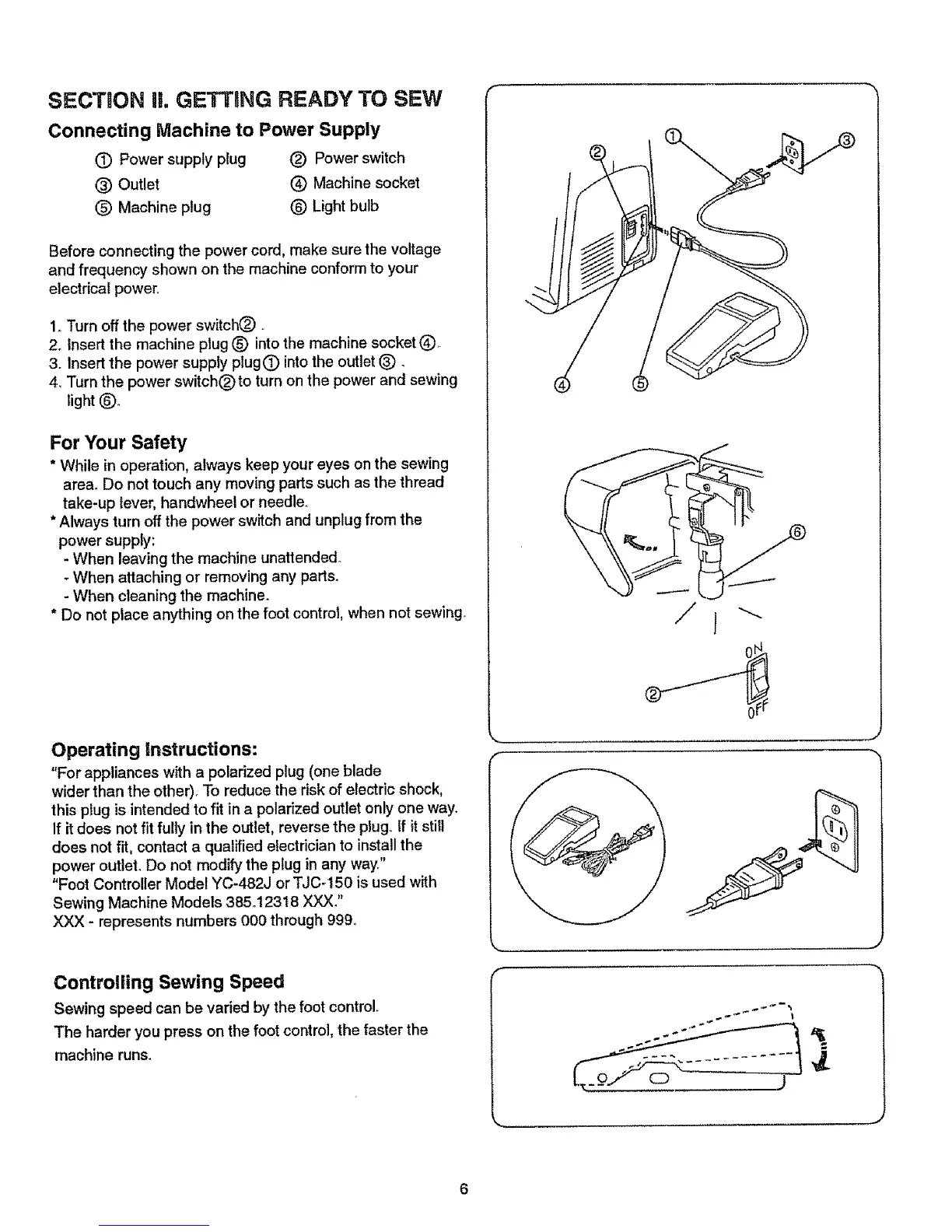 "Foot Controller Model YC-482J or TJC-150 is used with