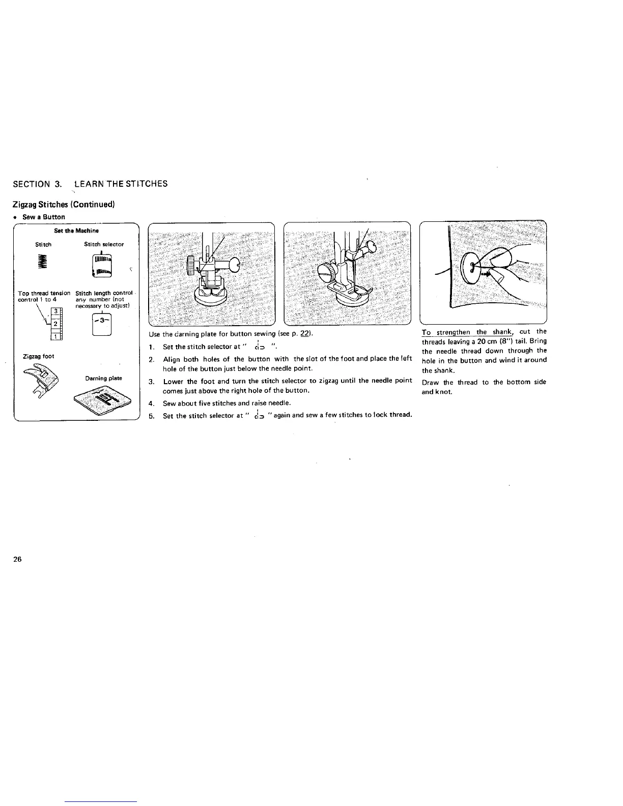 3, Lower the foot and turn the stitch selector to zigzag until the needle point