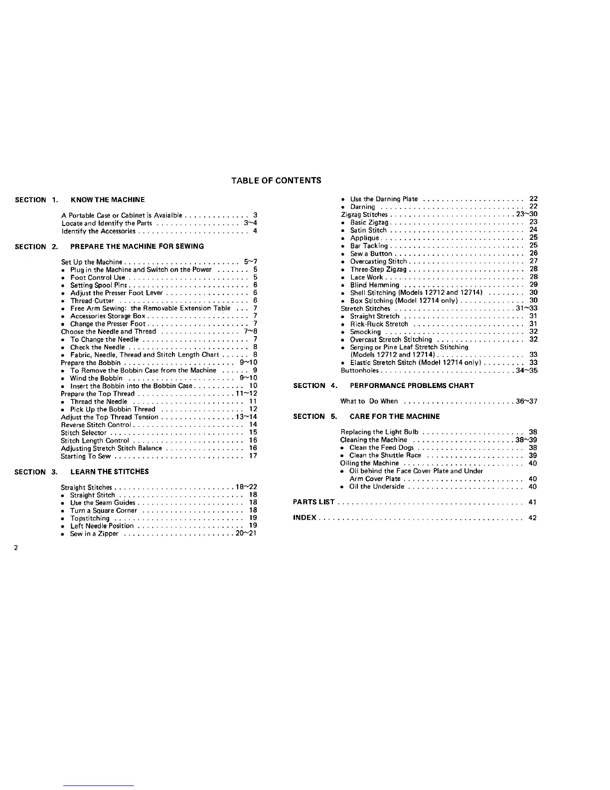 • Elastic Stretch Stitch (Model 12714 only) ......... 33