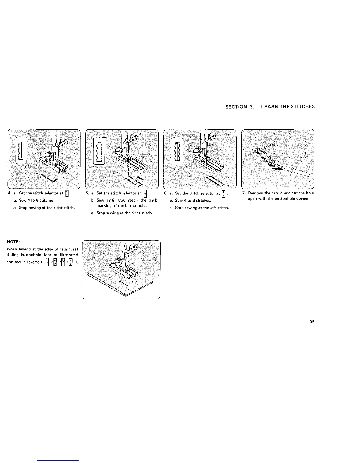 5. a. Set the stitch selector at I_ " 6. a. Set the stitch selector at r_ m