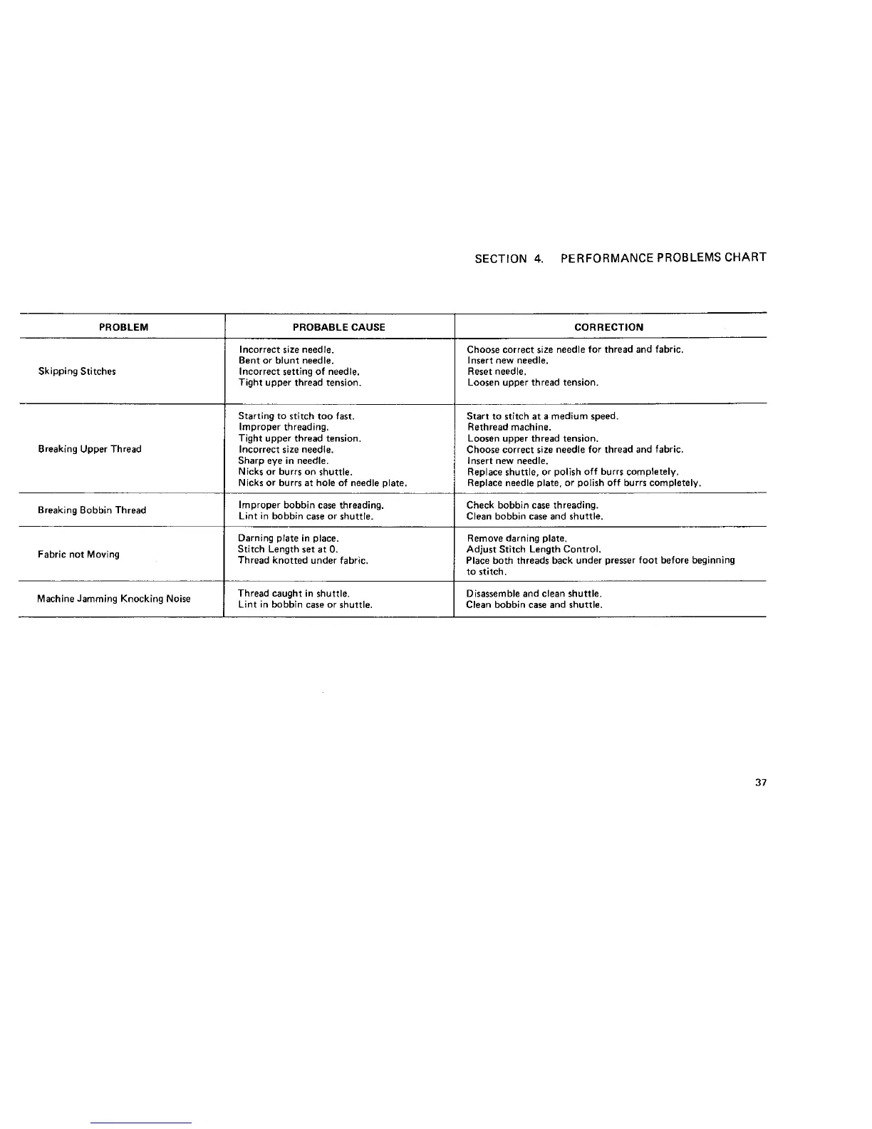 SECTION 4. PERFORMANCE PROBLEMS CHART