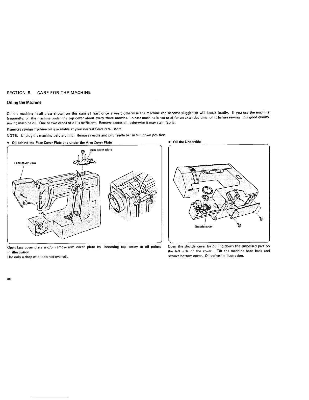 e Oil behind the Face Cover Plate and under the Arm Cover Plate • Oil the Underside