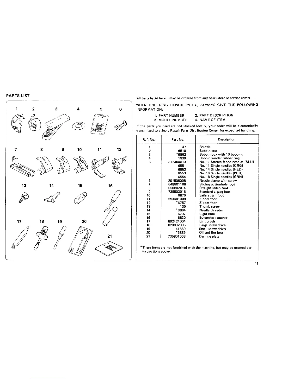 All parts listed herein may be ordered from any Sears store or servicecenter.