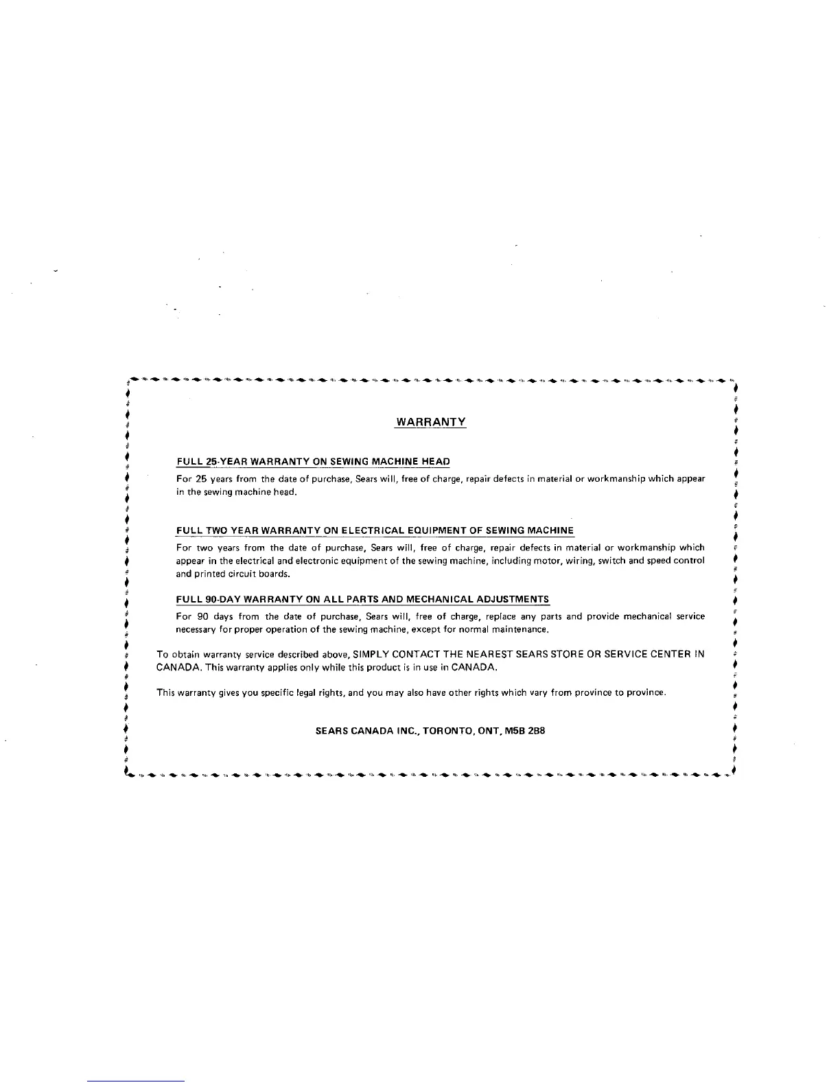 FULL 25-YEAR WARRANTY ON SEWING MACHINE HEAD _