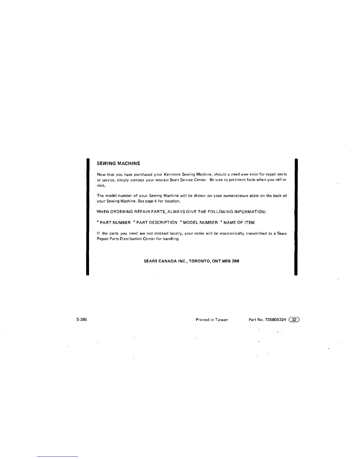 Now that you have purchased your Kenmore Sewing Machine, should a need ever exist for repair parts