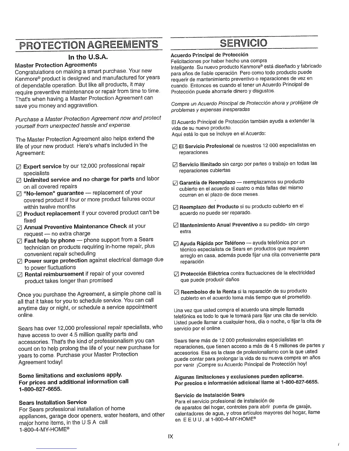 [] Unlimited service and no charge for parts and labor