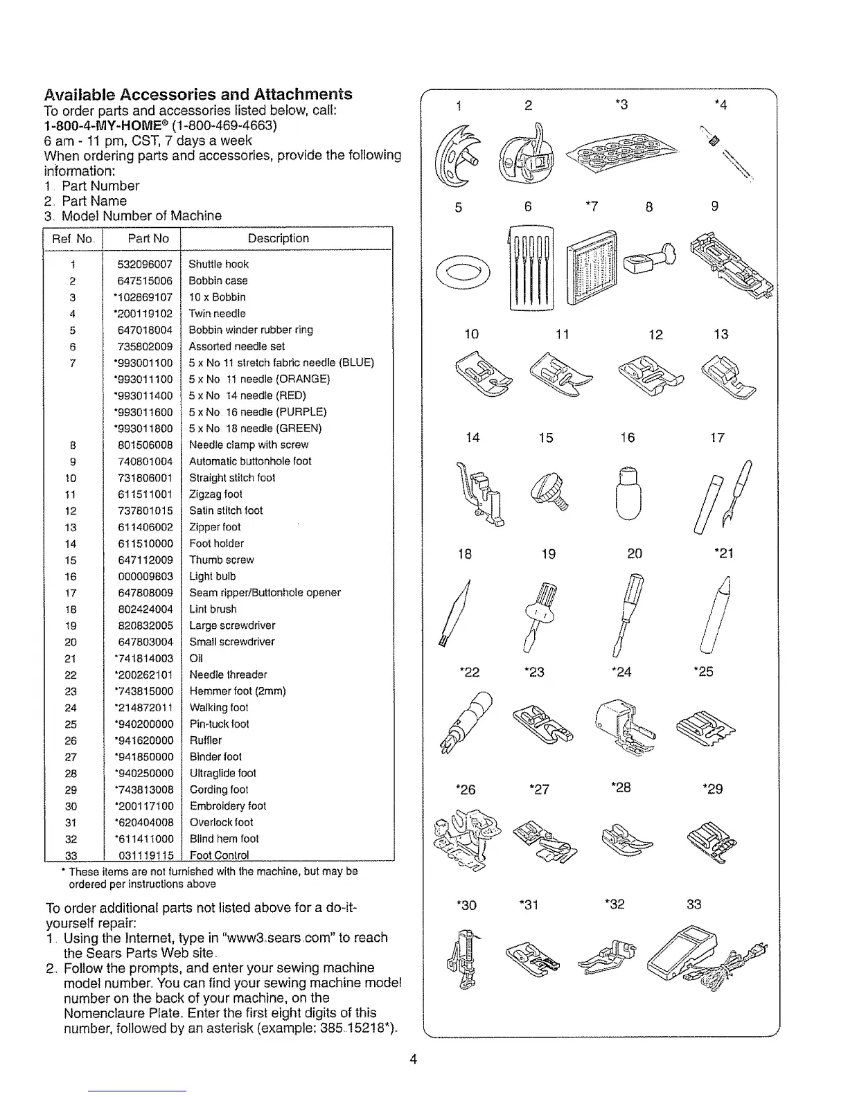 * These items are not furnished with the machine, but may be