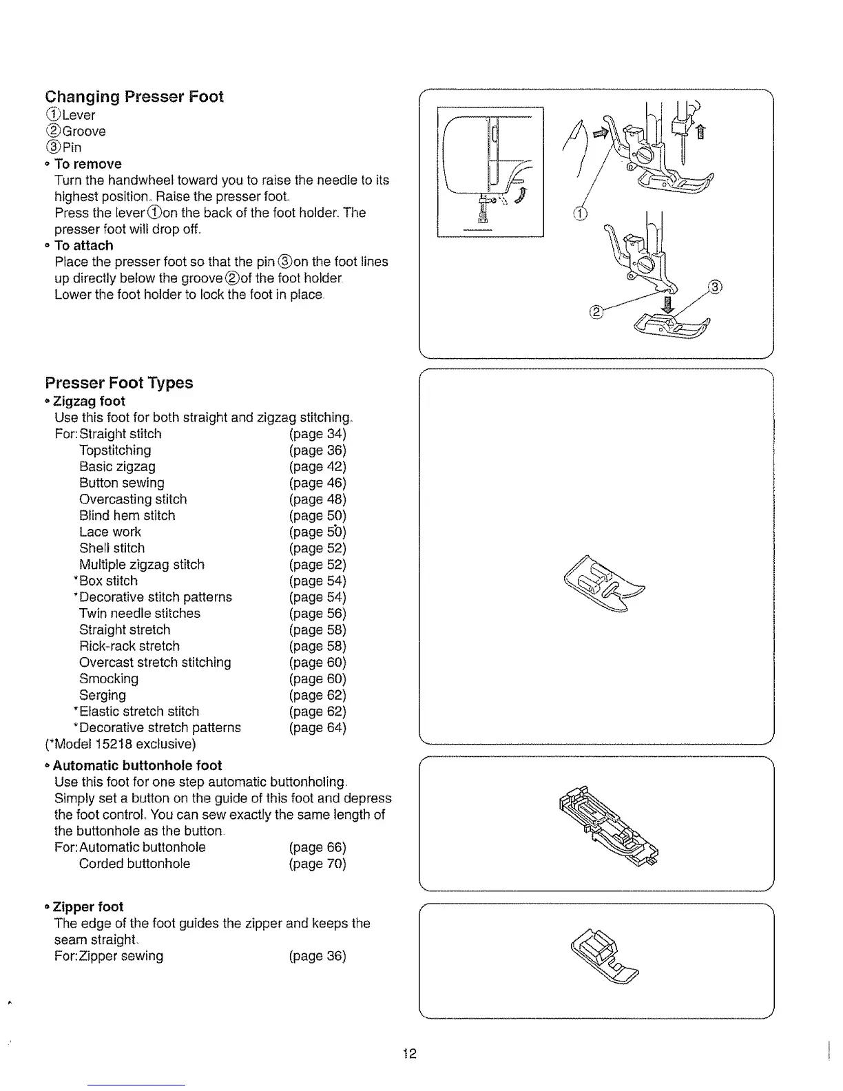 For:Zipper sewing (page 36)