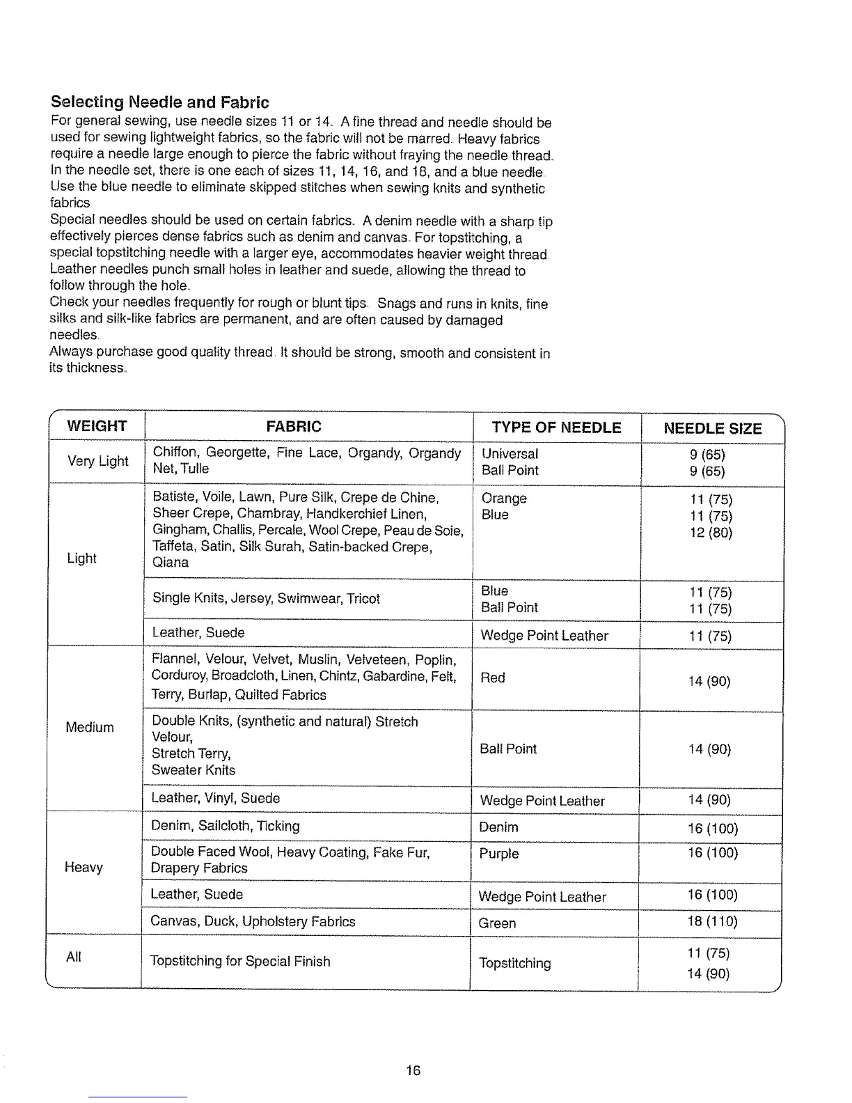 Special needles should be used on certain fabrics,. A denim needle with a sharp tip