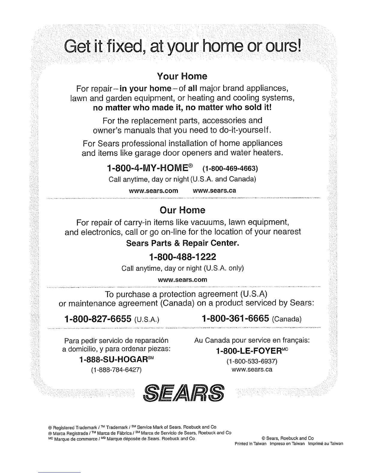 ® Marca Registrada / -rt,_Marca de F&bdca 1sMMarca de Servicio de Sears, Roebuck and Co