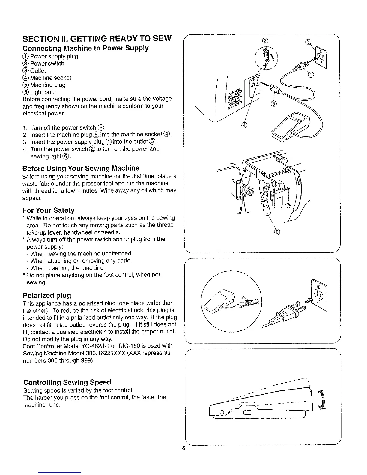 Foot Controller Model YC-482J-1 or TJC-150 is used with