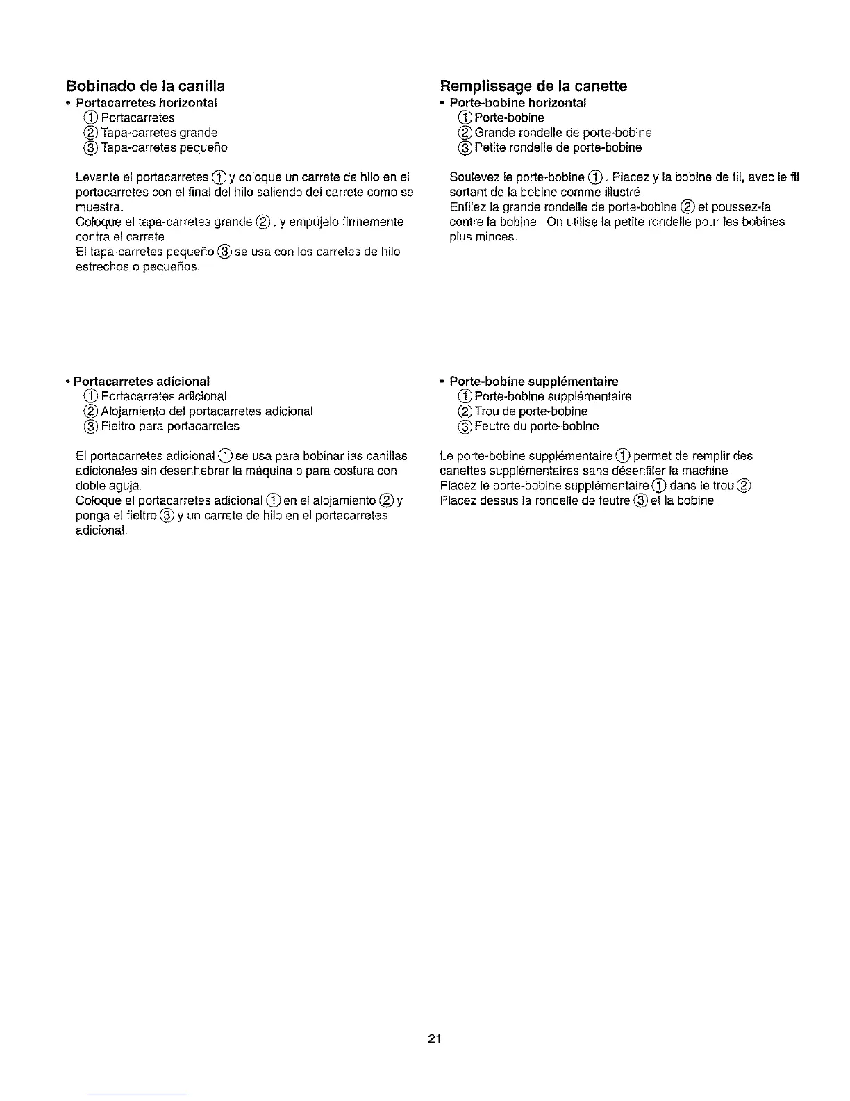 El portacarretes adicional (_ se usa para bobinar las canillas