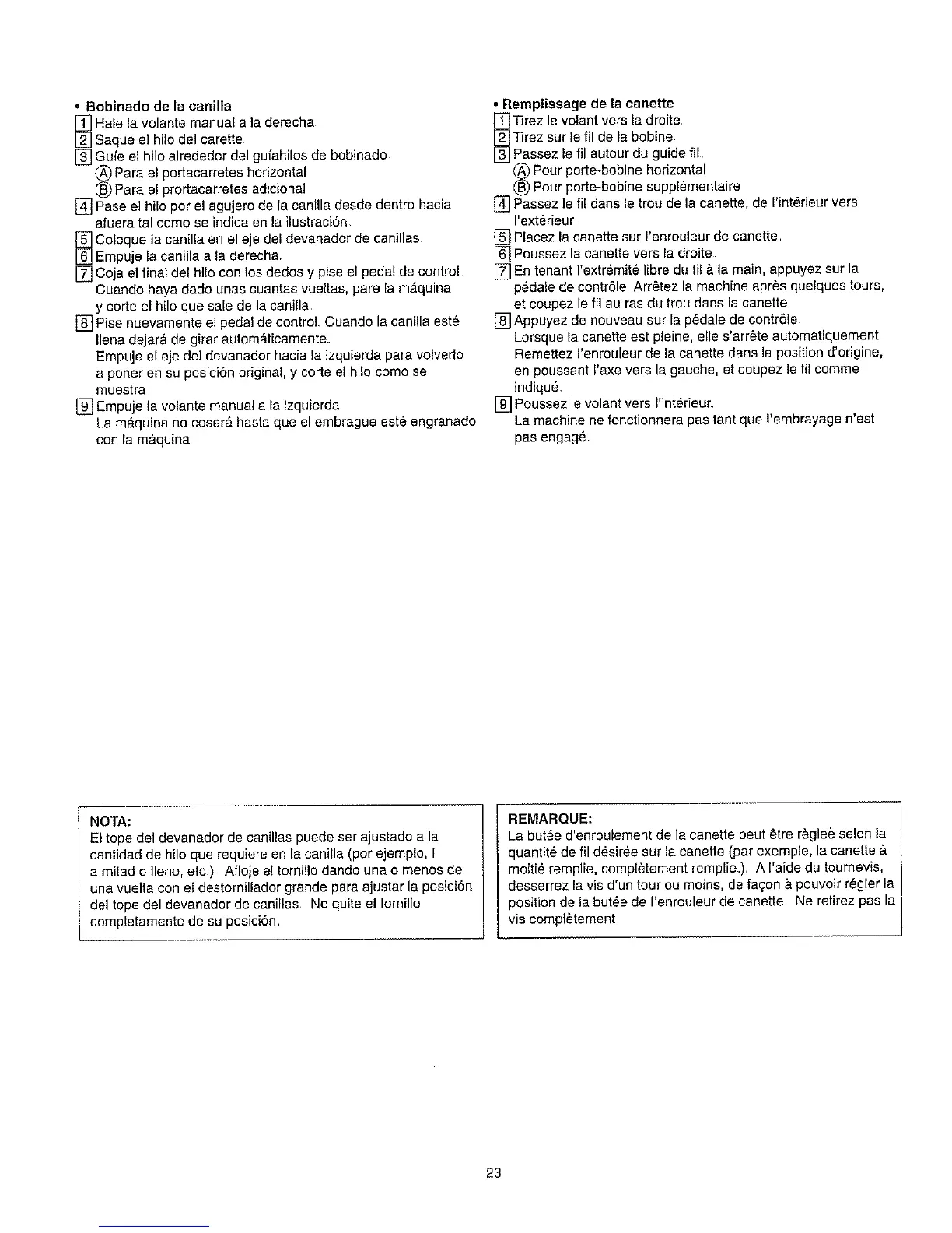 position de la butte de I'enrouleur de canette Ne retirez pas la