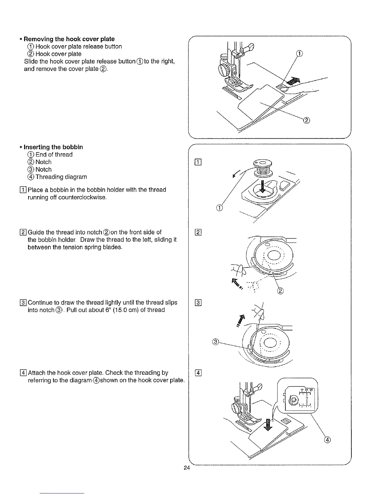 into notch(_ Pull out about 6" (15.0 cm) of thread