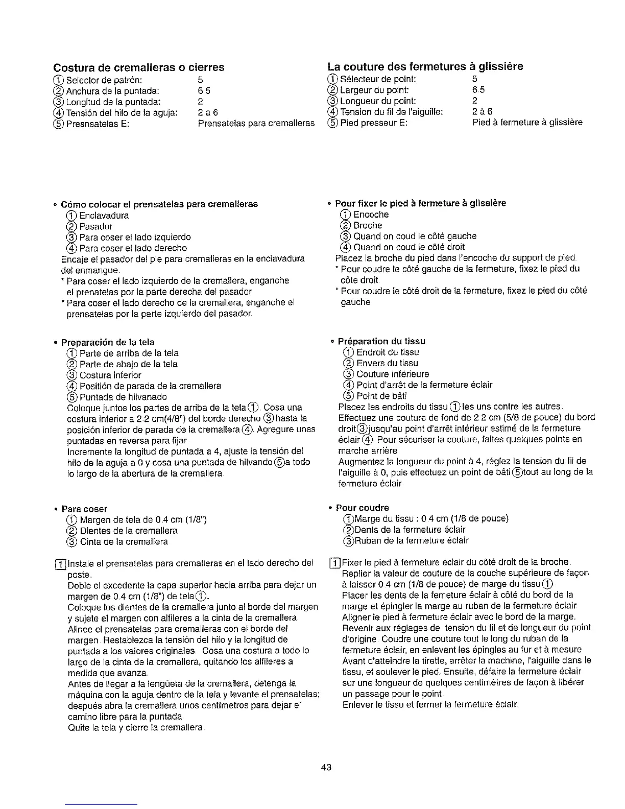 • Para coser el lado izquierdo de la crema!lera, enganche