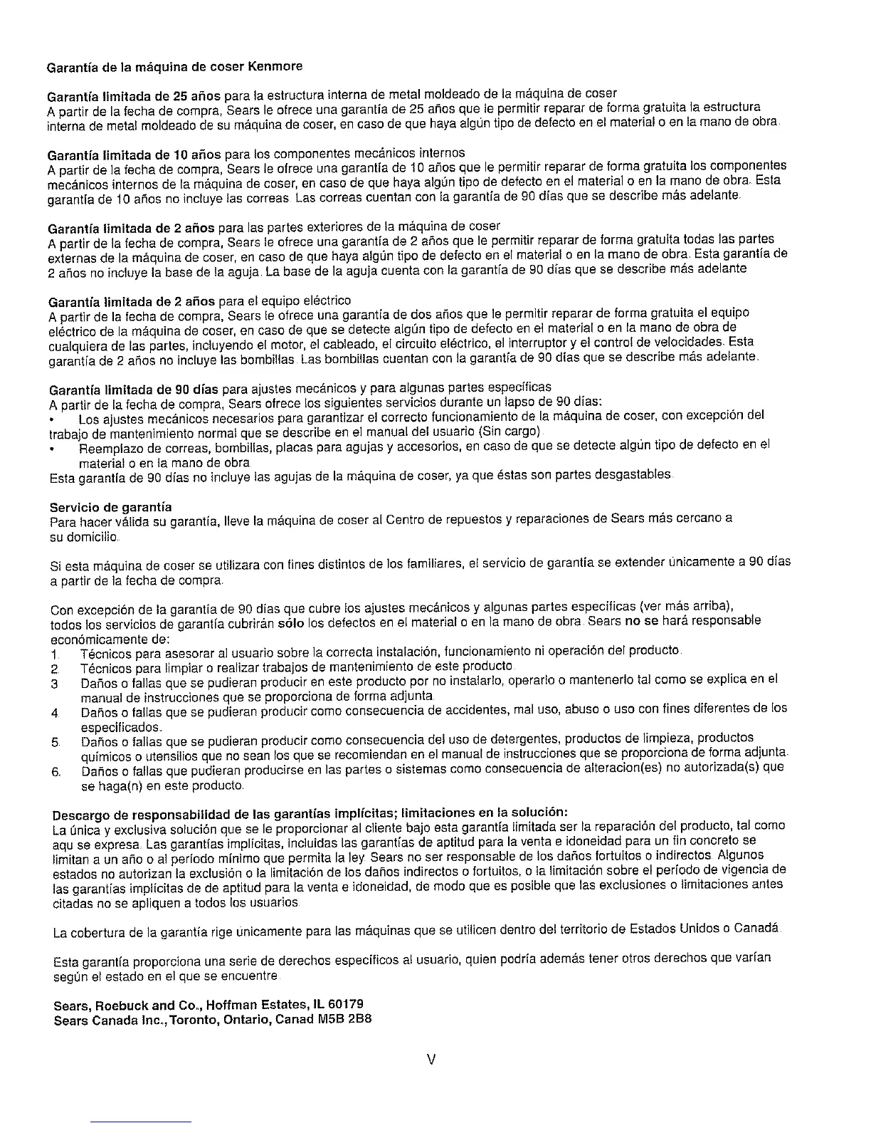 Para hacer v&lida su garantia, Ileve la rnAquina de coser al Centre de repuestos y reparaciones de Sears mAs cercano a