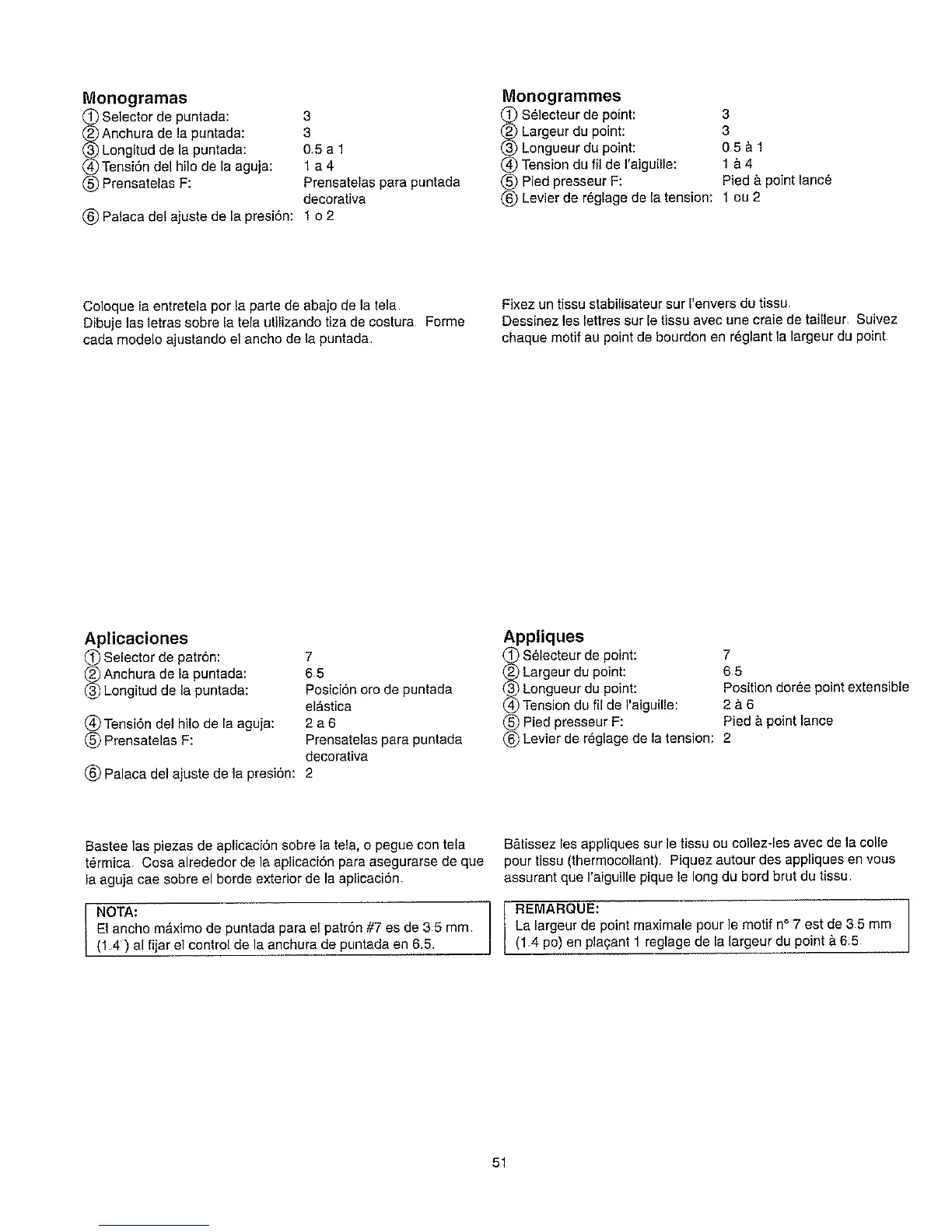 El ancho mAximo de puntada para e! patr6n #7 es de 35 mm