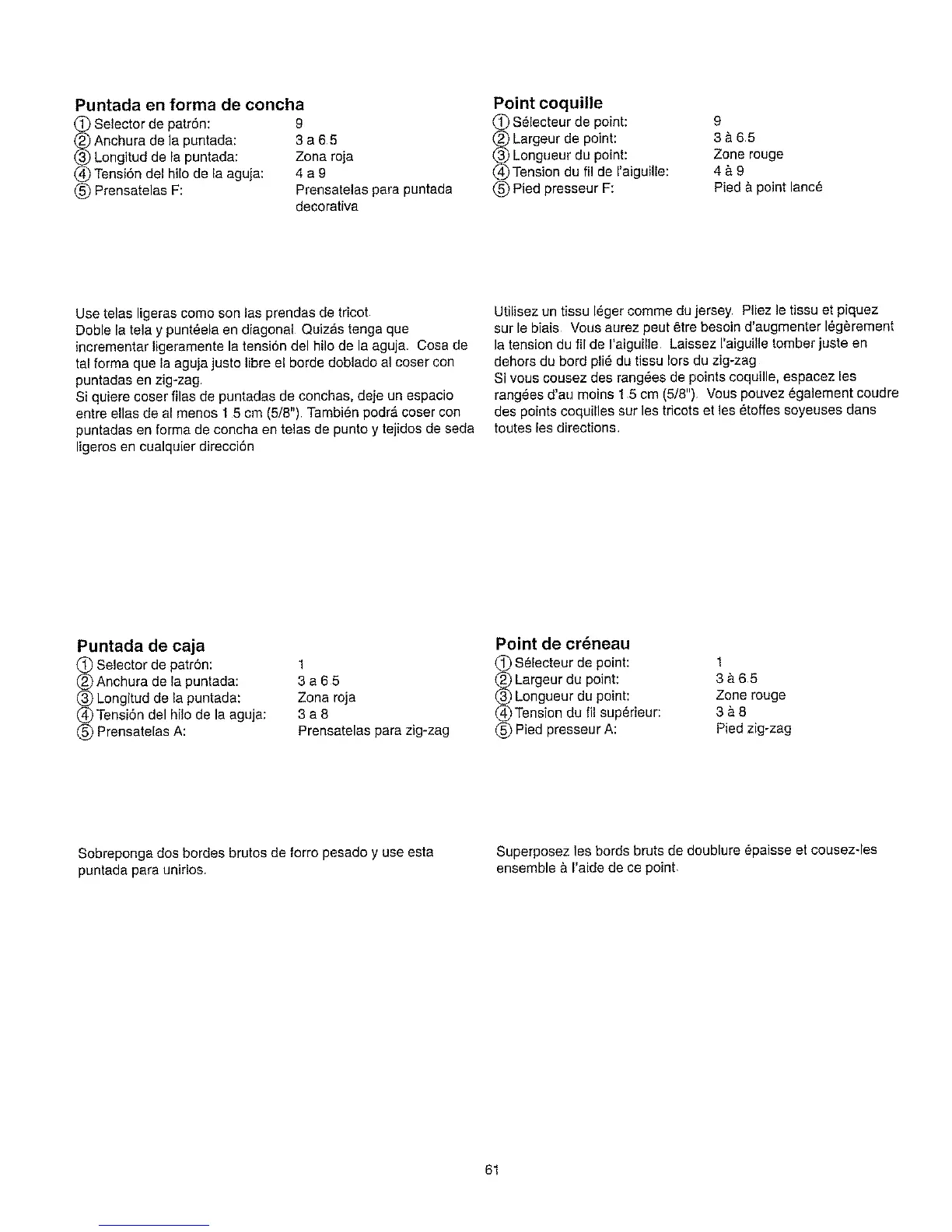 Tension du fil de I'aiguille: 4 & 9