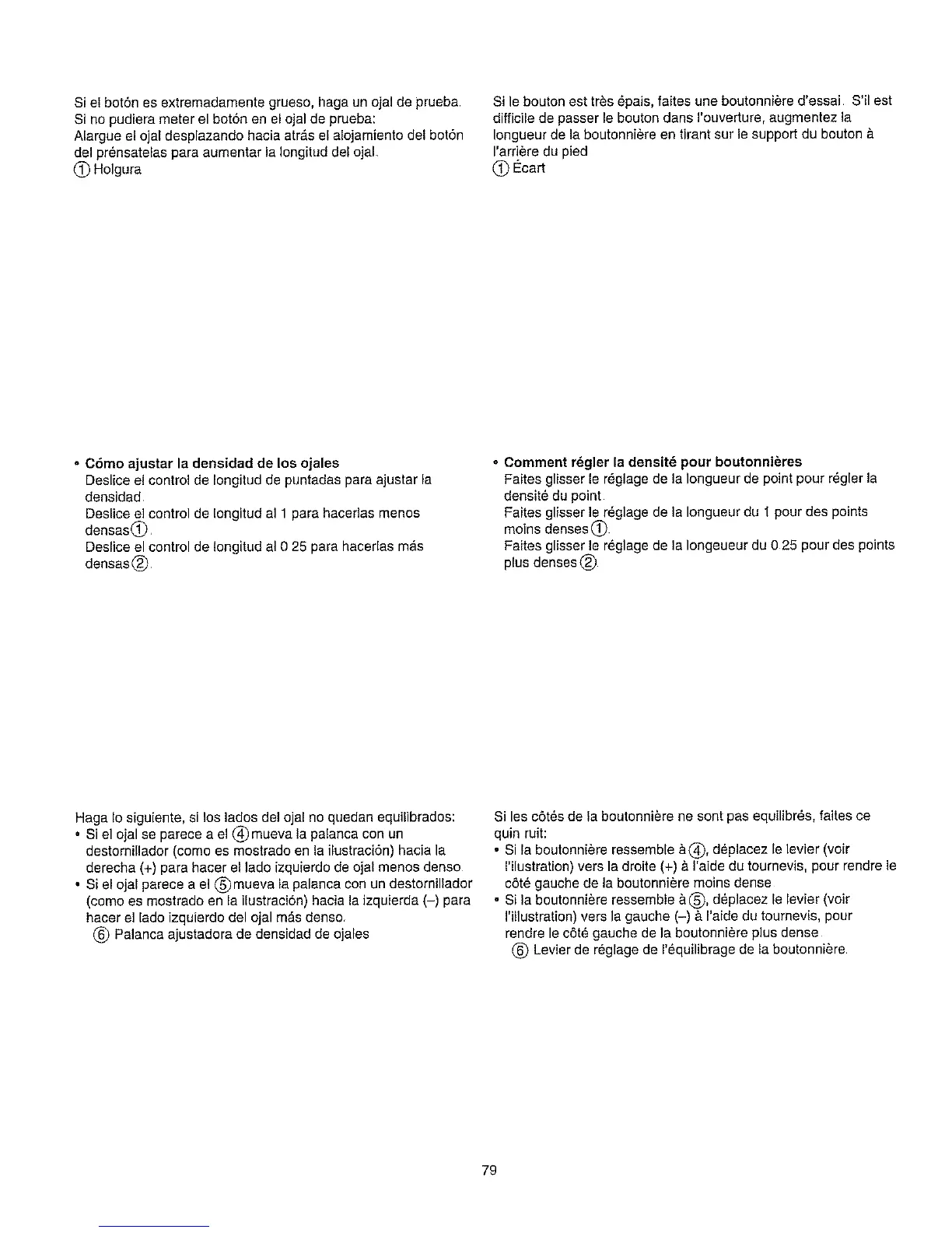 derecha (+) para hacer e! lado izquierdo de ojal menos denso