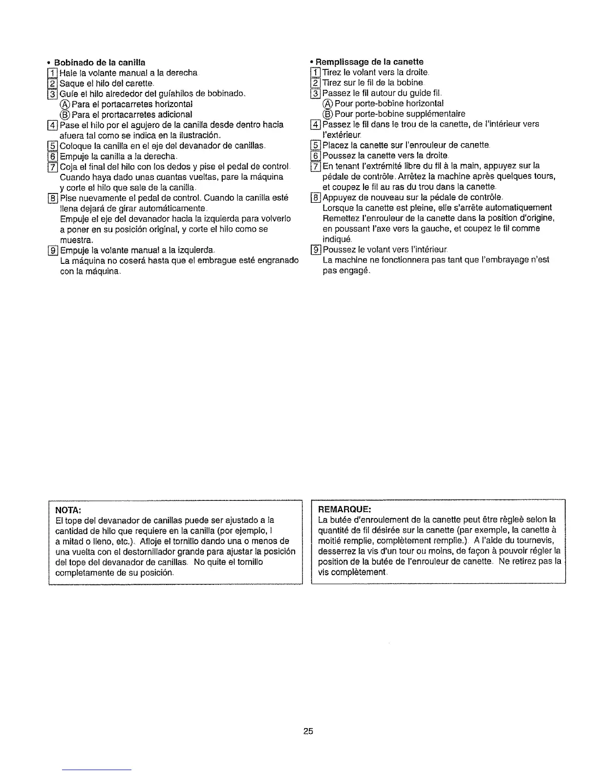 El tope del devanador de canil_as puede ser ajustado a Ia