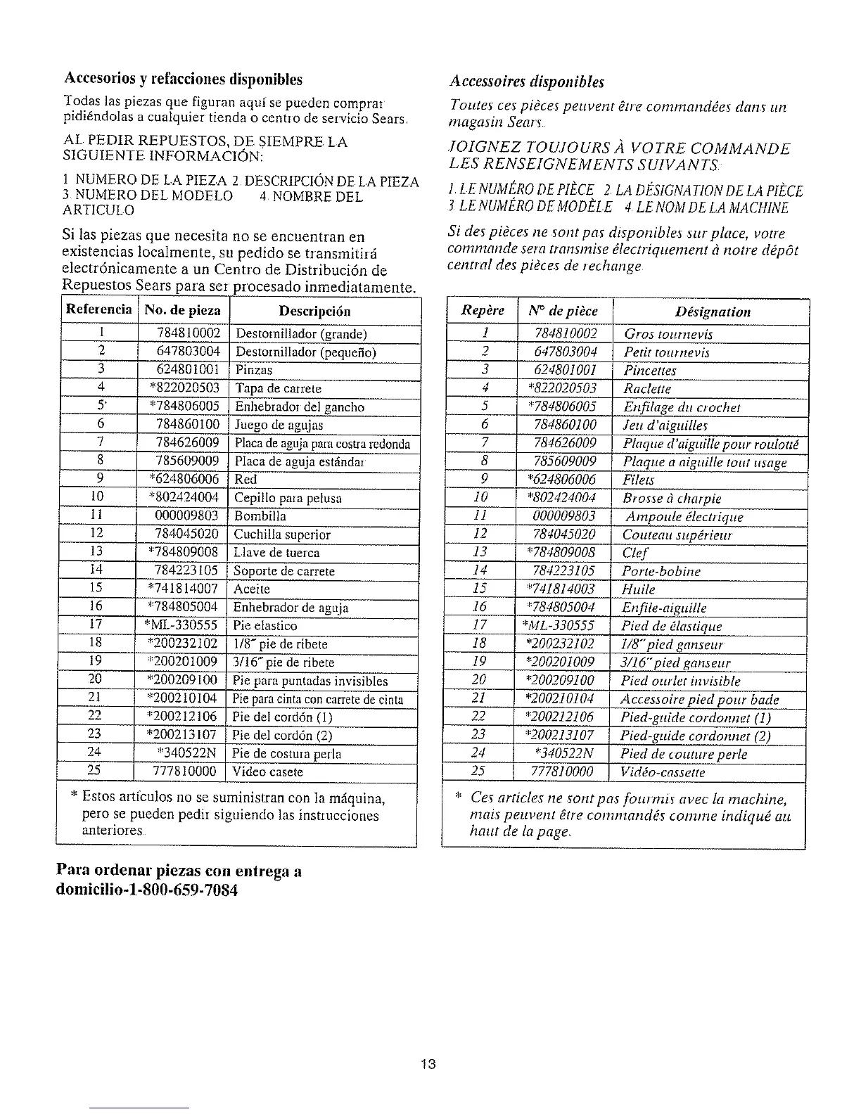 Si de5 pi&es ne 5ont pa_ disponibles sur place, votre