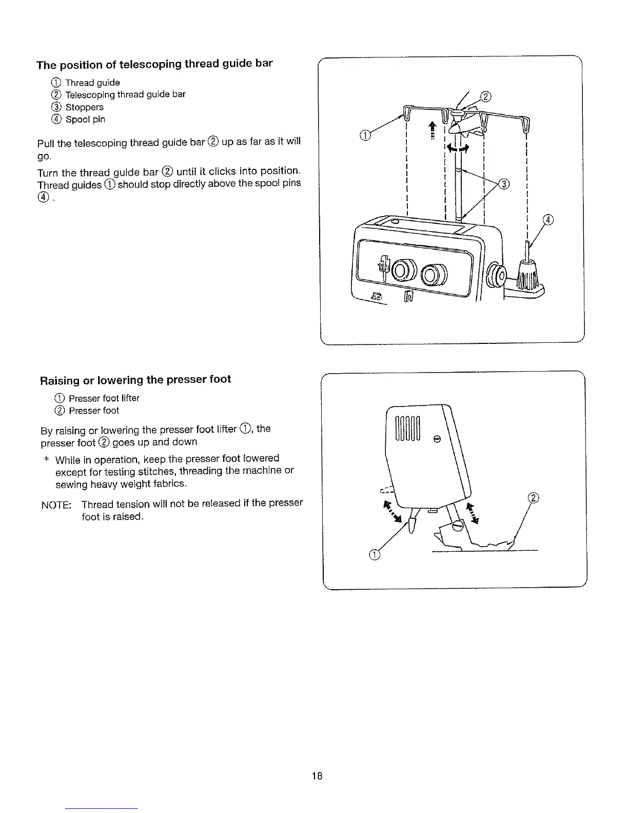 NOTE: Thread tension will net be released if the presser