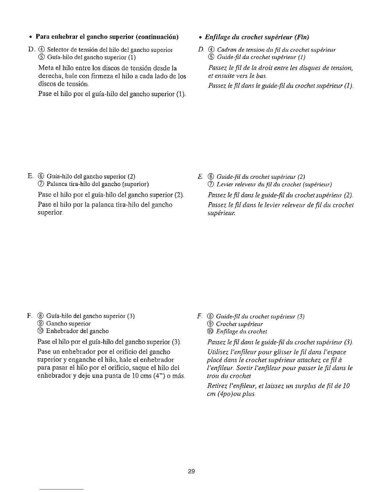 * Para enhebrar el gancho superior (continuaci6n)