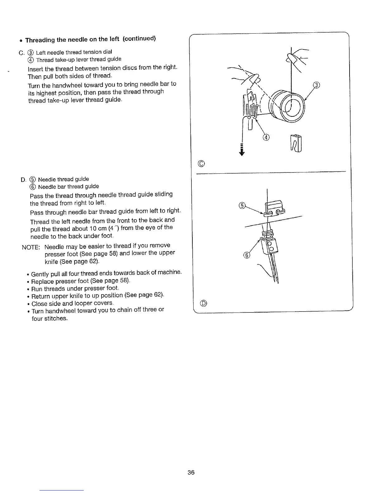 • Run threads under presser foot