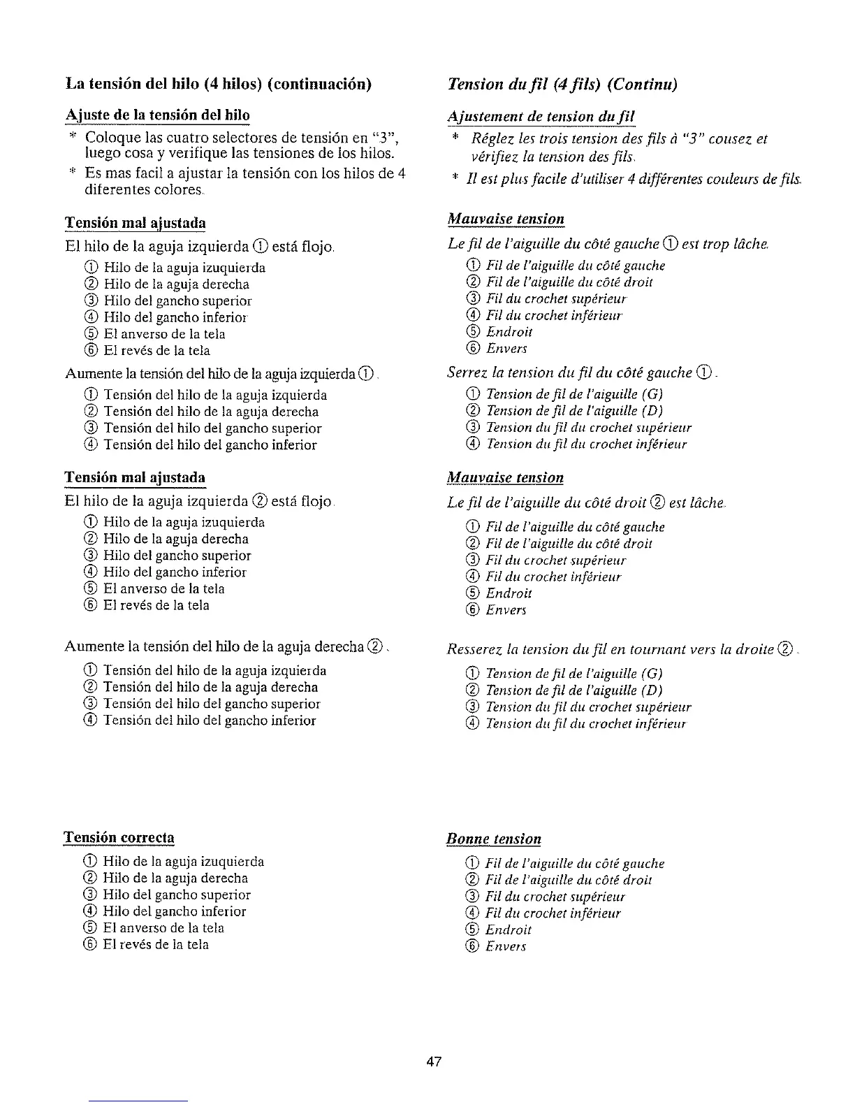 La tensi6n del hilo (4 hilos) (continuaci6n)