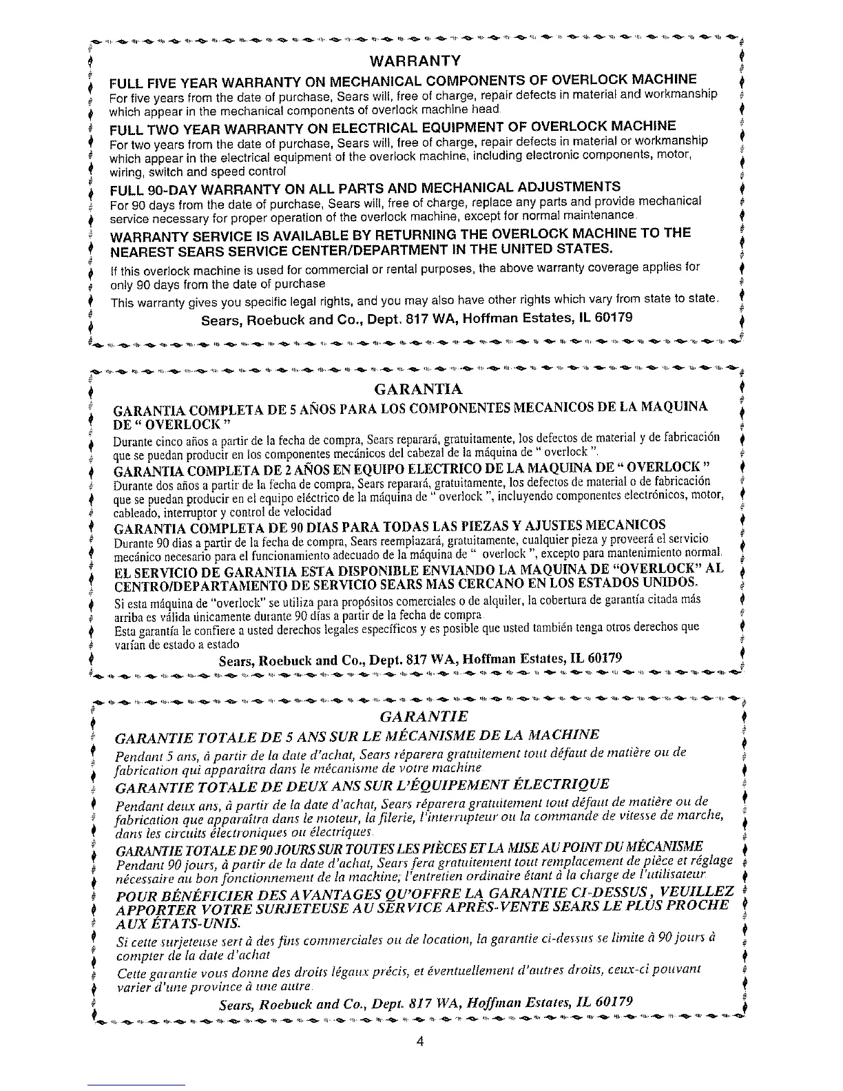 FULL FIVE YEAR WARRANTY ON MECHANICAL COMPONENTS OF OVERLOCK MACHINE
