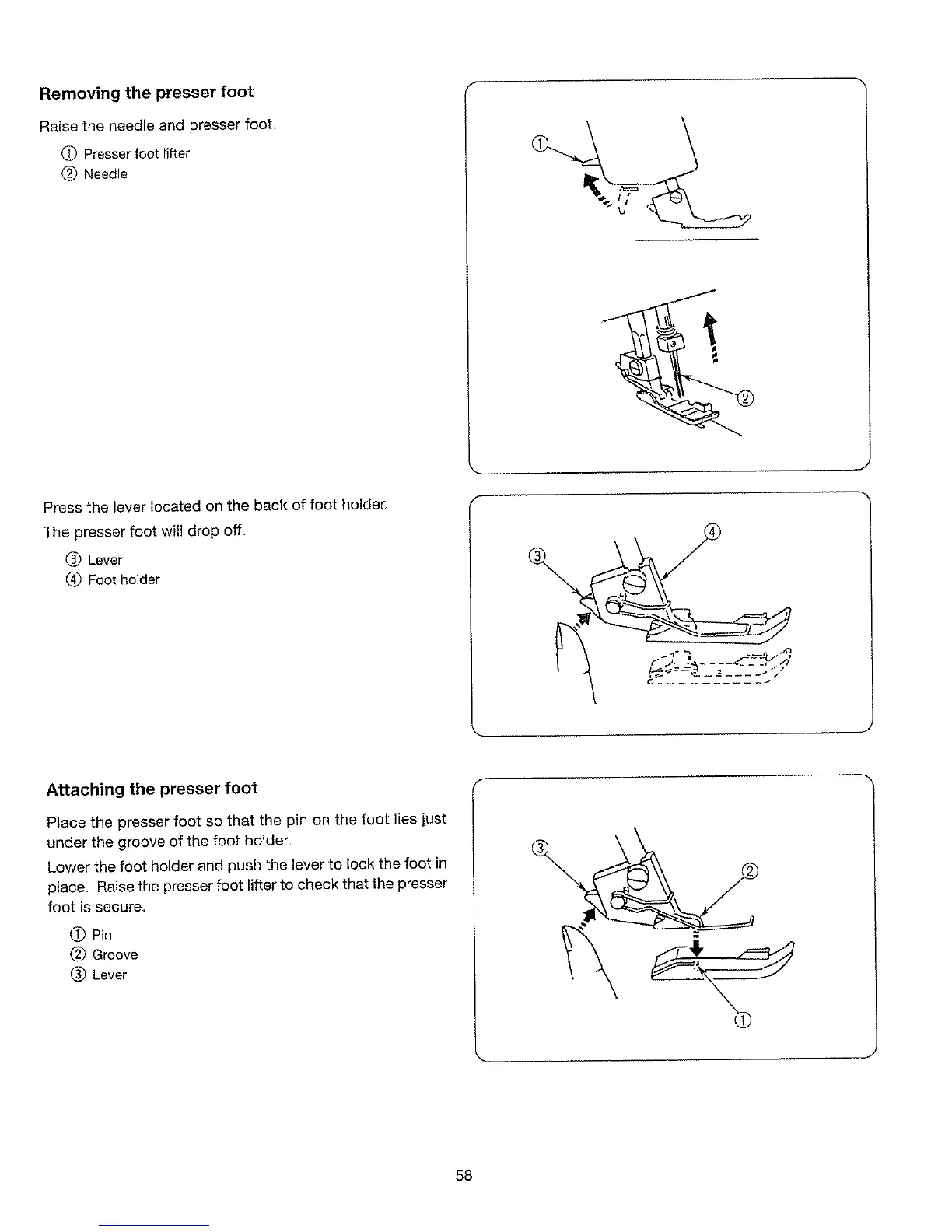 Attaching the presser foot