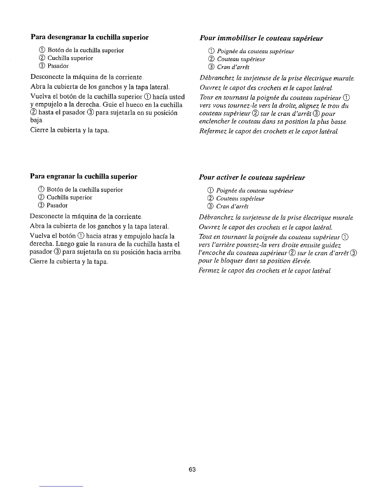 Vuelva el botdn de la cuchilla superioi (!) hacfa usted