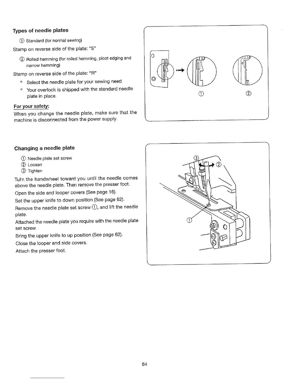 When you change the needle plate, make sure that the