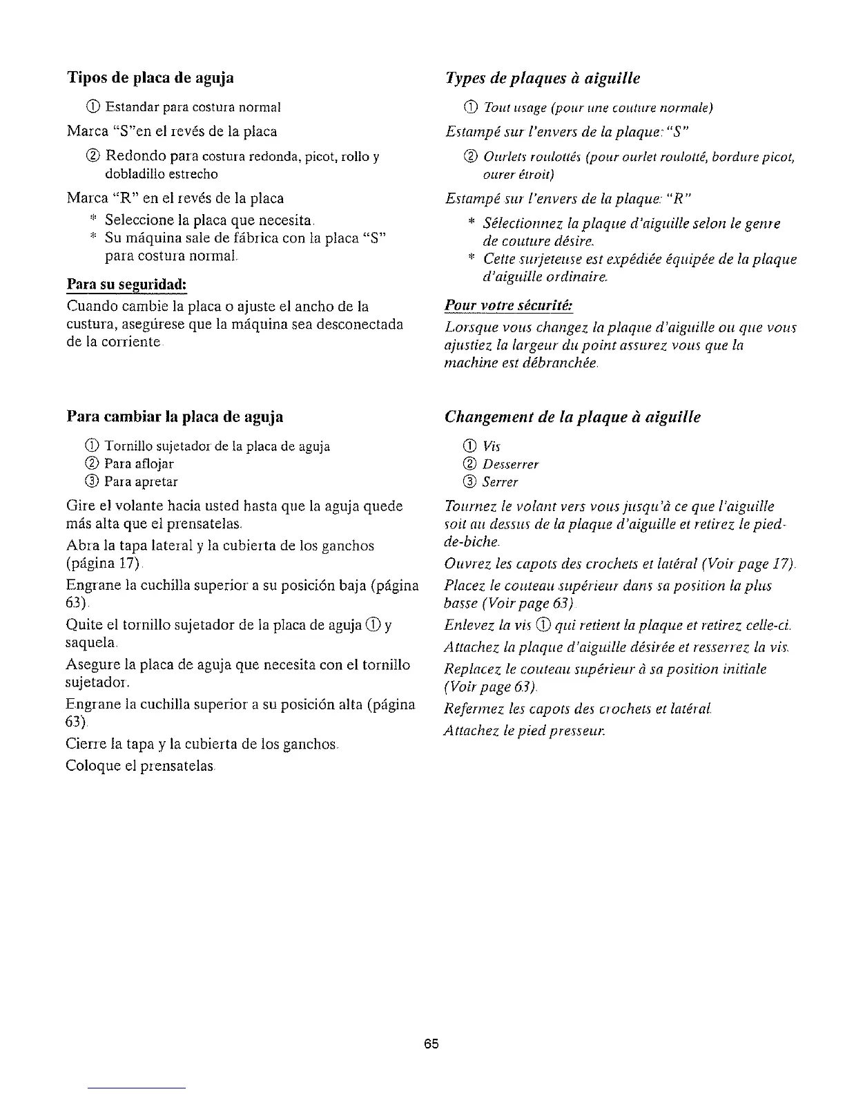 Para cambiar la placa de aguja