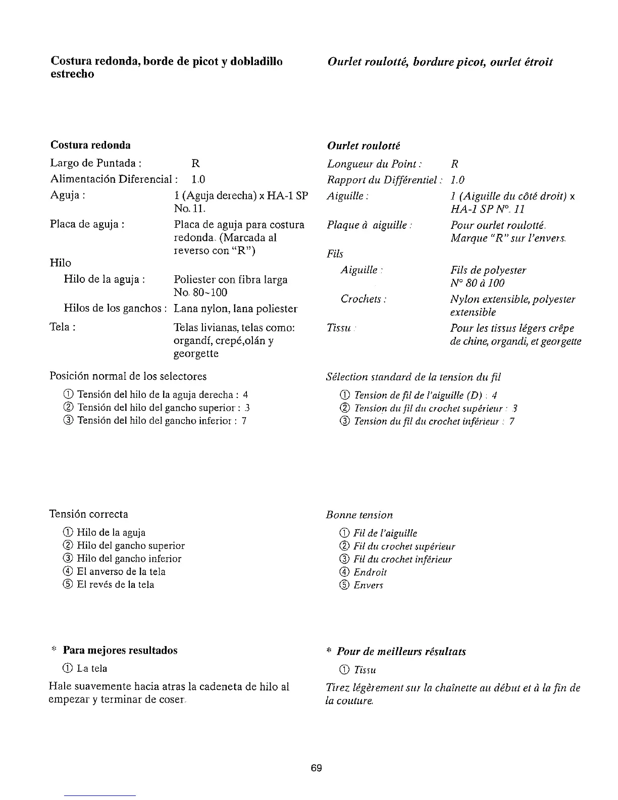 Costura redonda, borde de picot y dobladilio Ourlet roulott_, bordurepicot, ourlet _troit