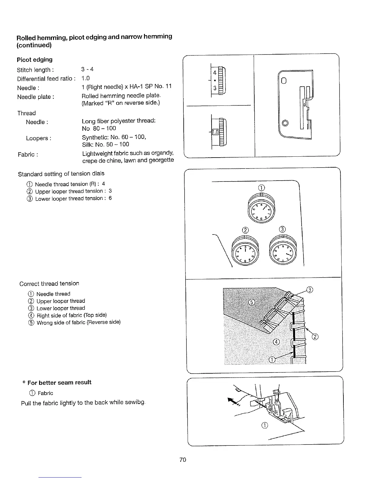 Rolled hemming, picot edging and narrow hemming