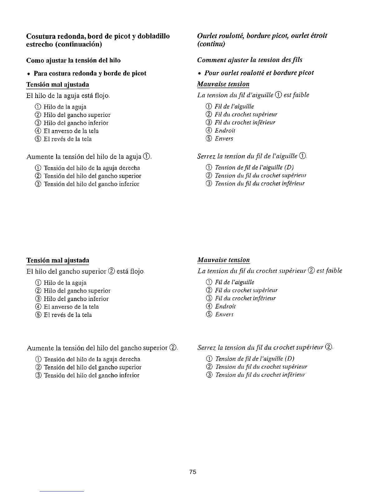 Serrez la tension du f!l de l'aiguille @_