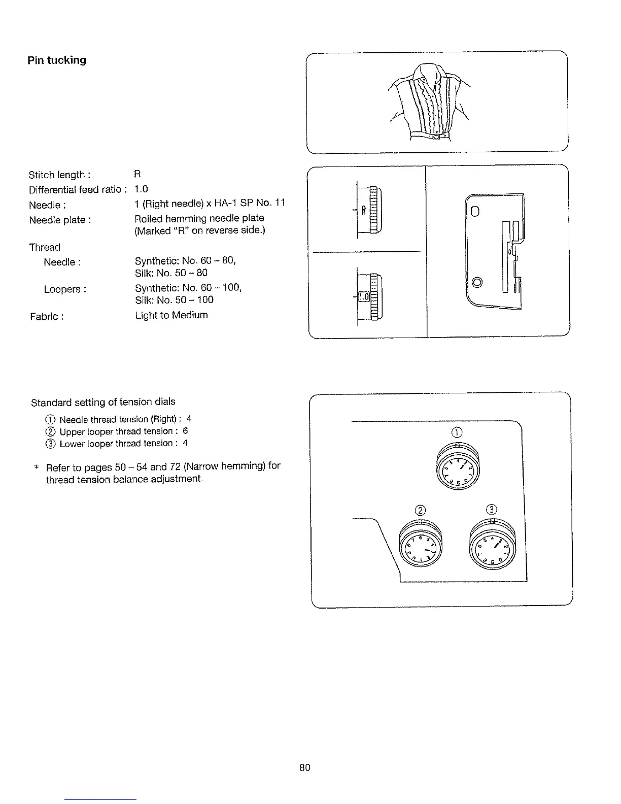 :_' Refer to pages 50 - 54 and 72 (Narrow hemming) for