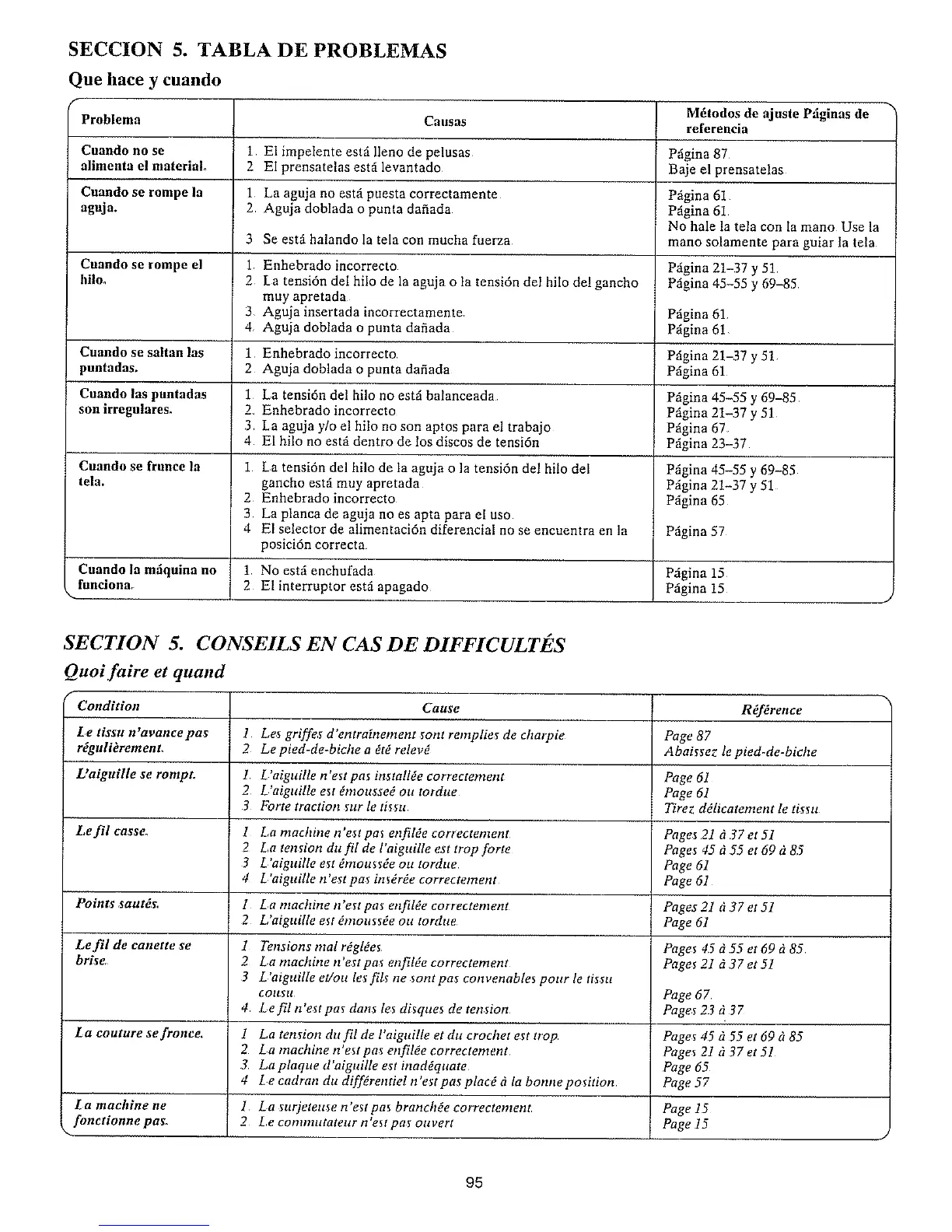 Points sautgs,, 1 £ a machine n'e_t pas enfilOe correctement Pages 21 tl 37 et 51