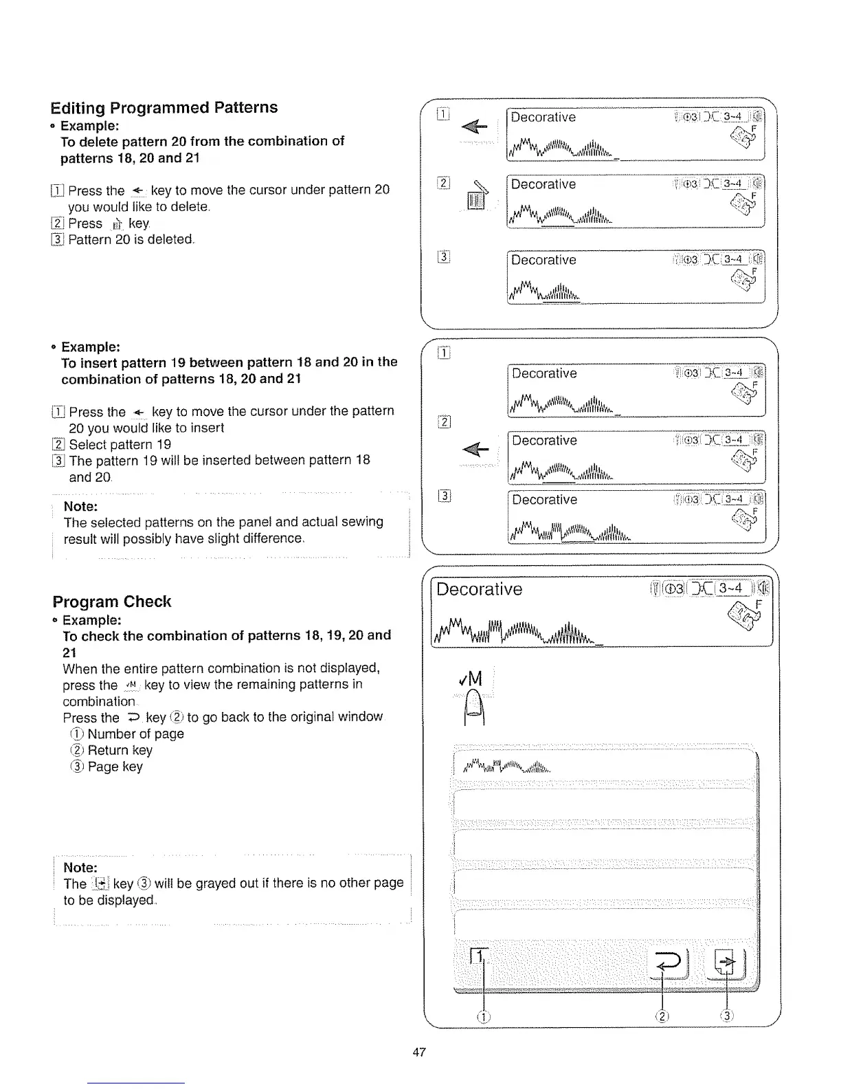 When the entire pattern combination is not displayed,