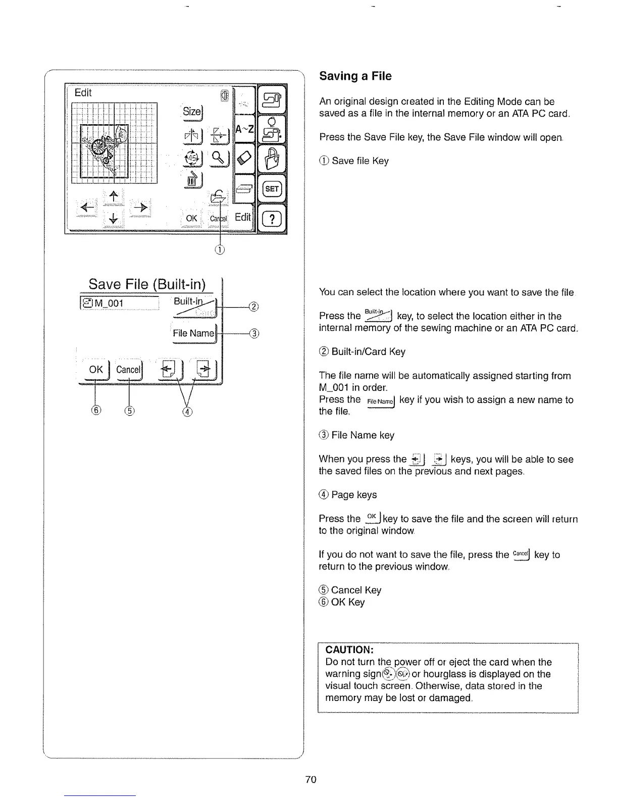 internal memory of the sewing machine or an ATA PC card.