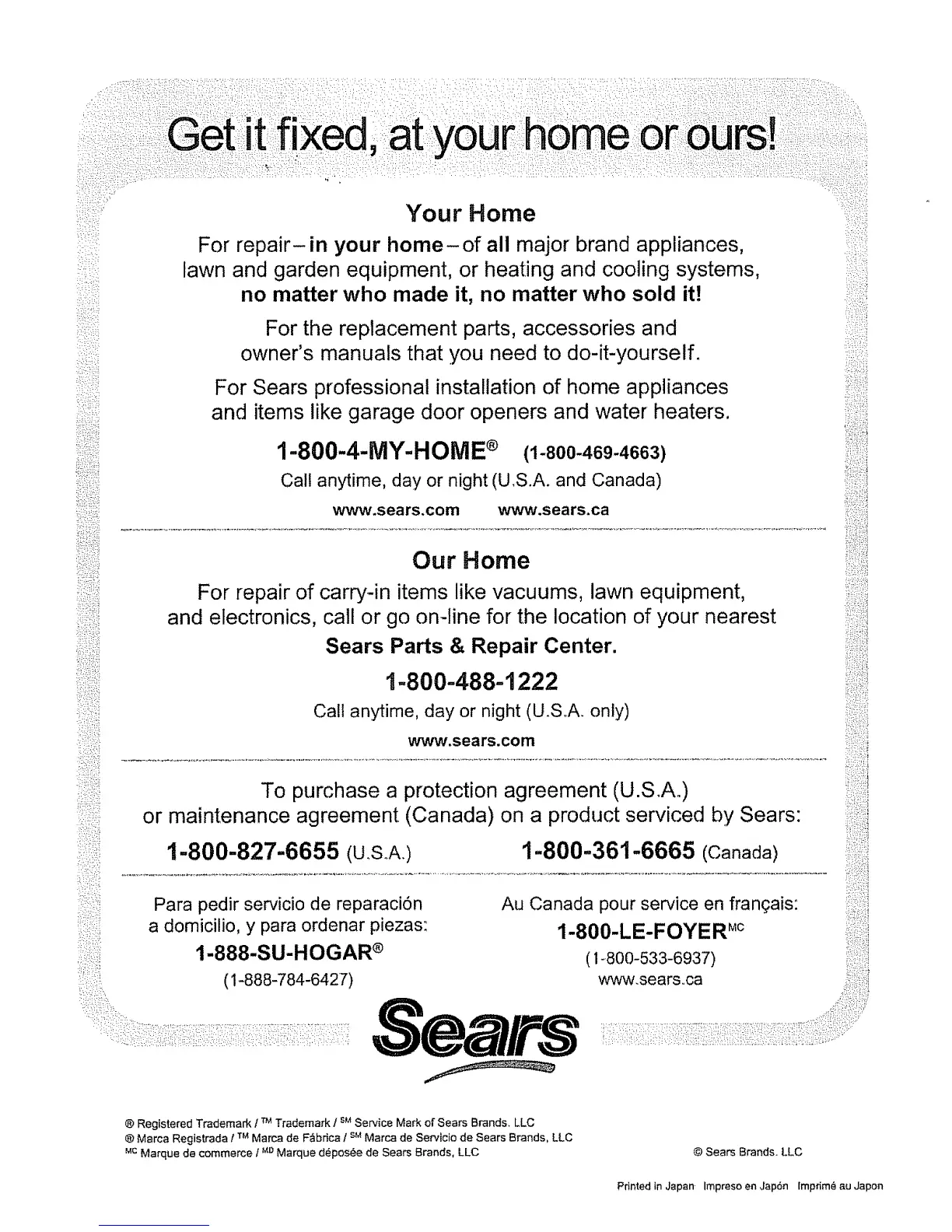 ® Marca Registrada l _MMarca de F_bdca I su Marca de Servieio de Sears Brands, LLC