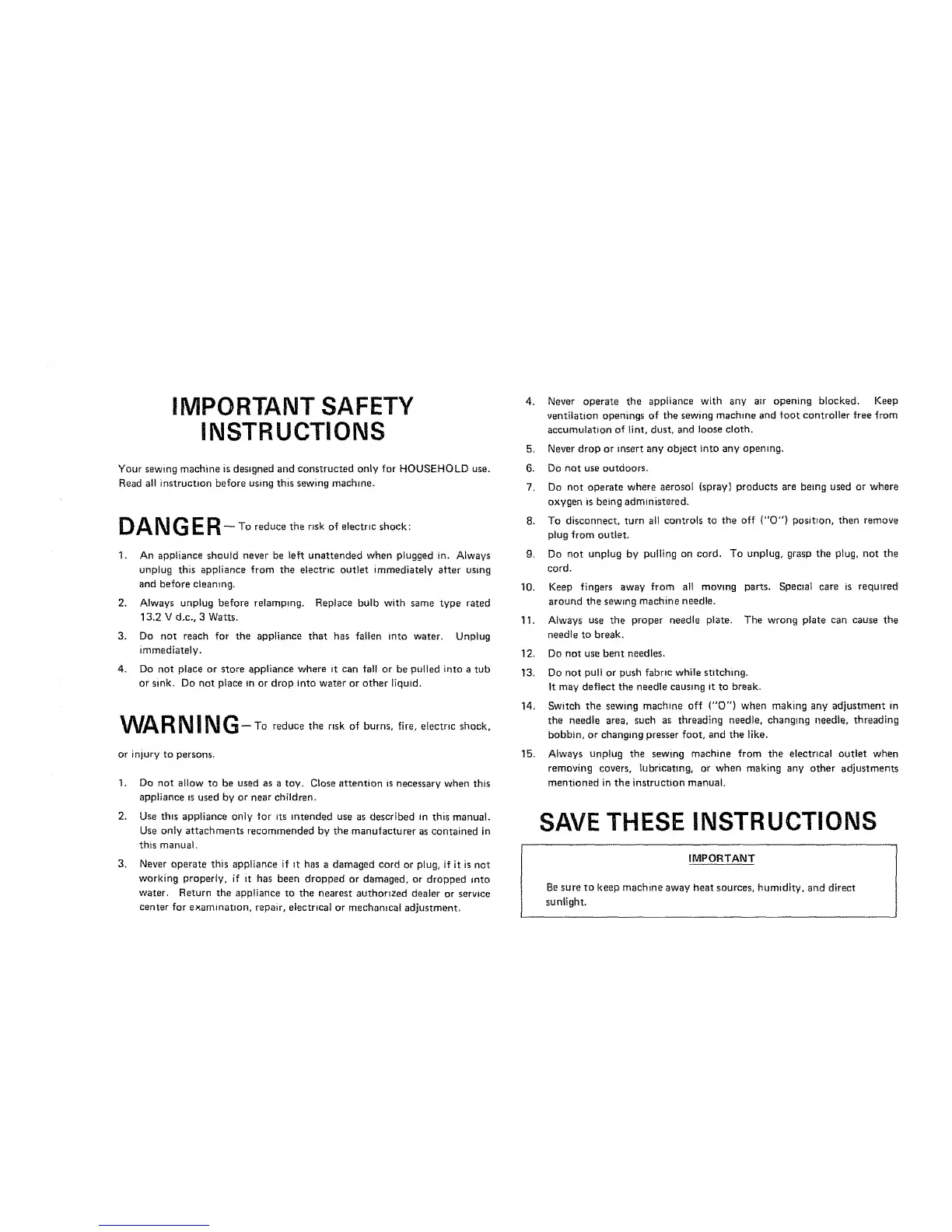 Your sewing machine is designed and constructed only for HOUSEHOLD use.