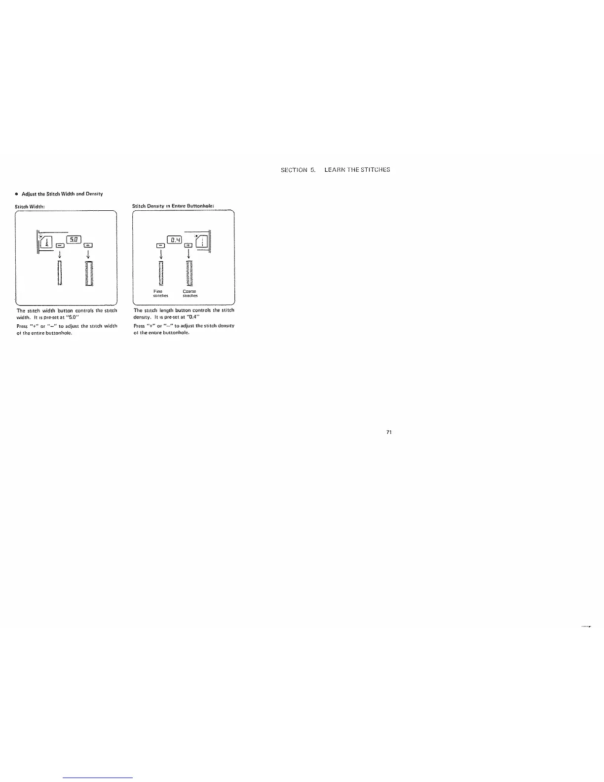 Stitch Width; Stitch Density tn Entire Buttonhole: