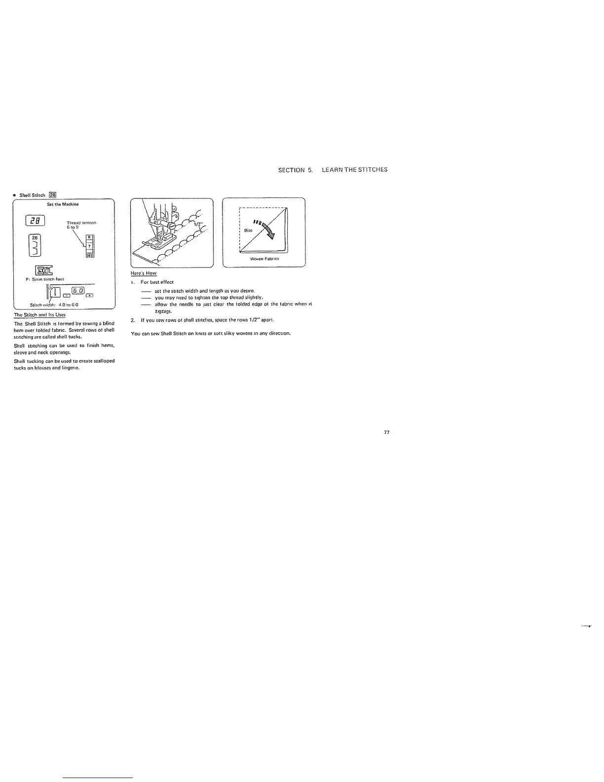 You can sew Shell Stitch on knits or sort silky wovens In any direction+
