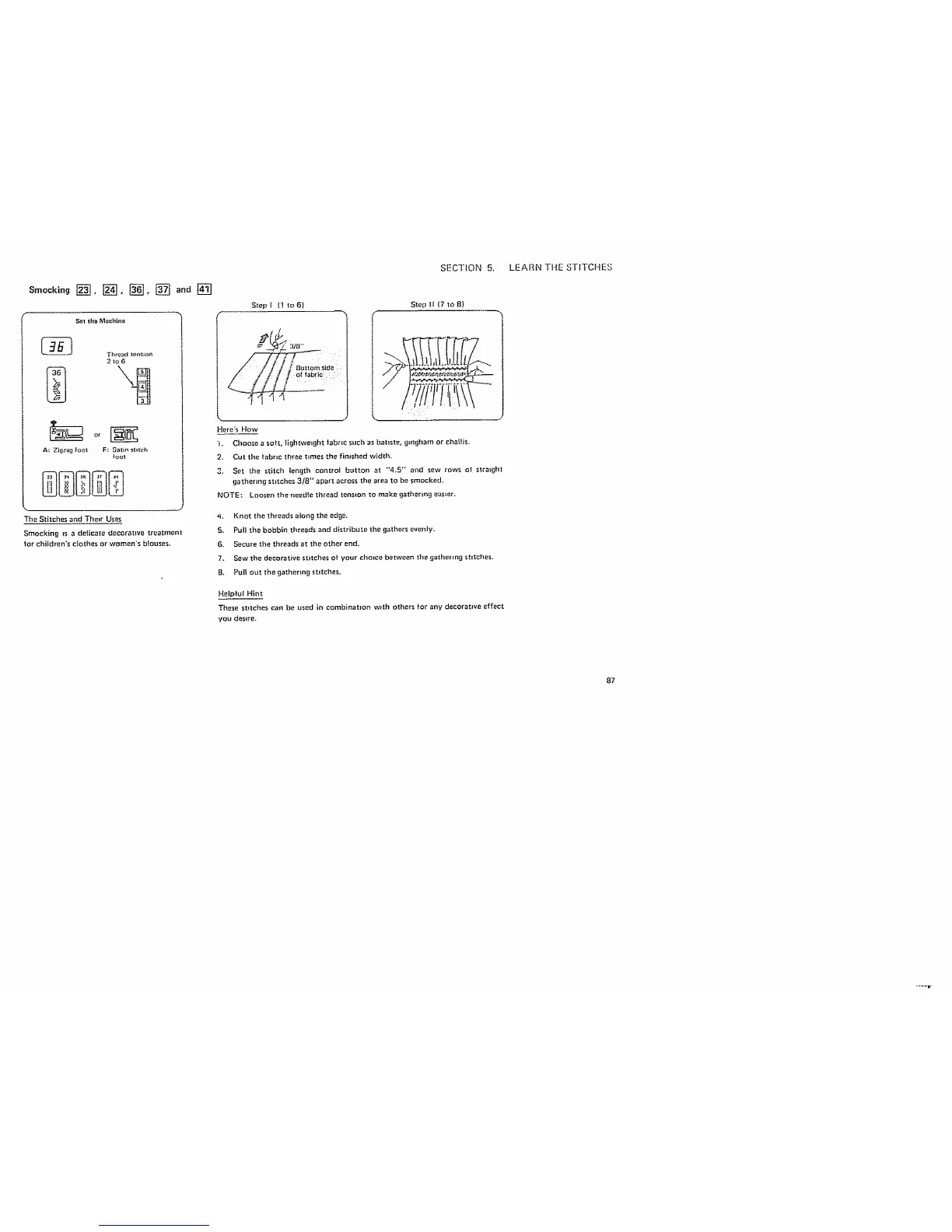 NOTE: Loosen the need!e thread tensfon to make gathenng easter.